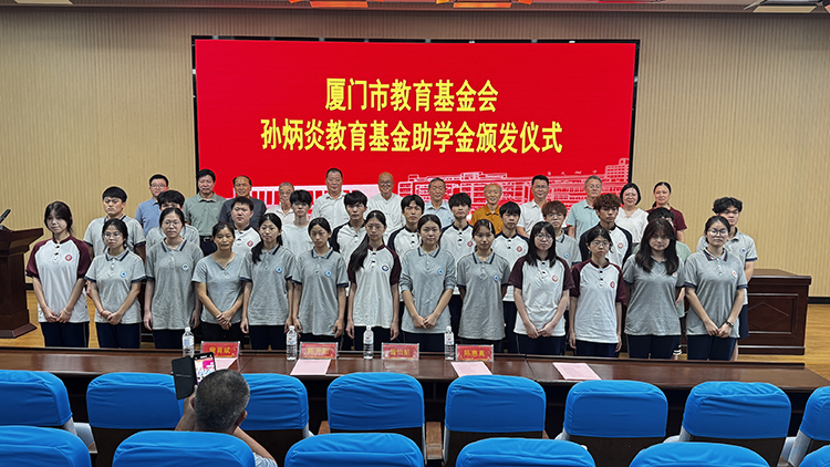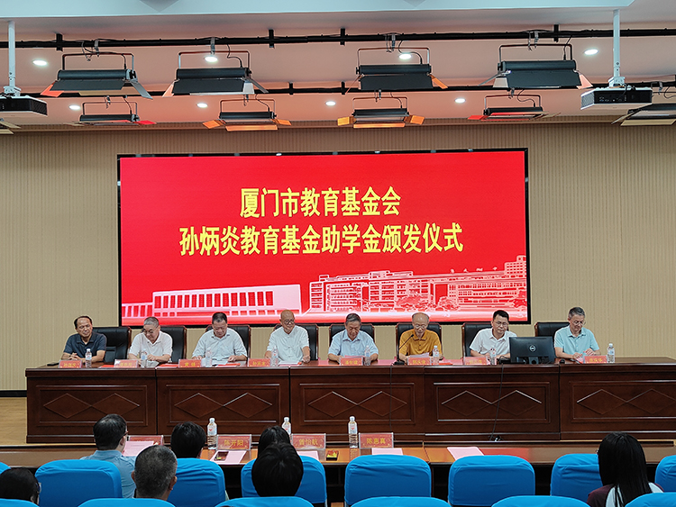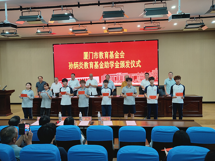 廈門市教育基金會法人潘世建講話,他深深感恩陳嘉庚及孫炳炎先生的愛國教育情操,寄語受助學(xué)生“夢在前面,路在腳下,鍥爾不舍,馳而不息”,希望大家能朝前看,努力成為社會的棟梁。